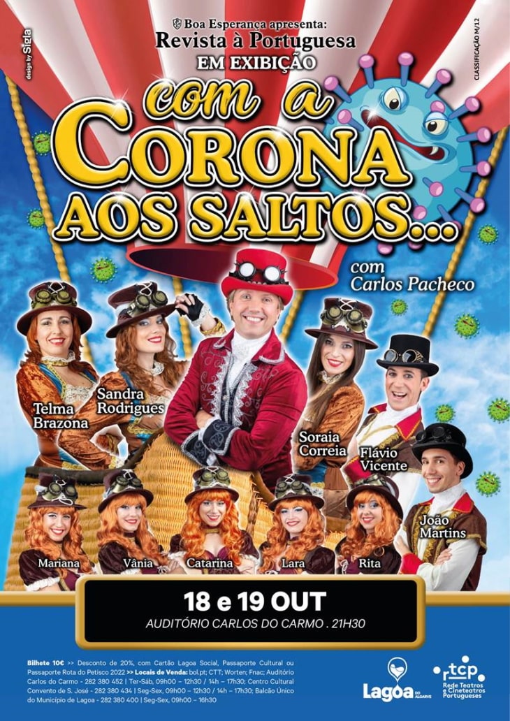 O Teatro de Revista à Portuguesa do Boa Esperança está de volta a Lagoa e ao Auditório Carlos do Carmo com o espetáculo "Com a Corona aos Saltos...", com apresentações nos dias 18 e 19 de outubro, pelas 21h30.