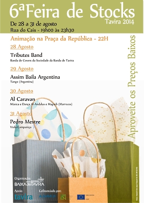 A Associação Baixa de Tavira, com o apoio do Município de Tavira, promove de 28 a 31 de agosto a sexta edição da Feira de Stocks, na Rua do Cais, entre as 19h00 e as 23h30, com entrada livre.