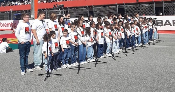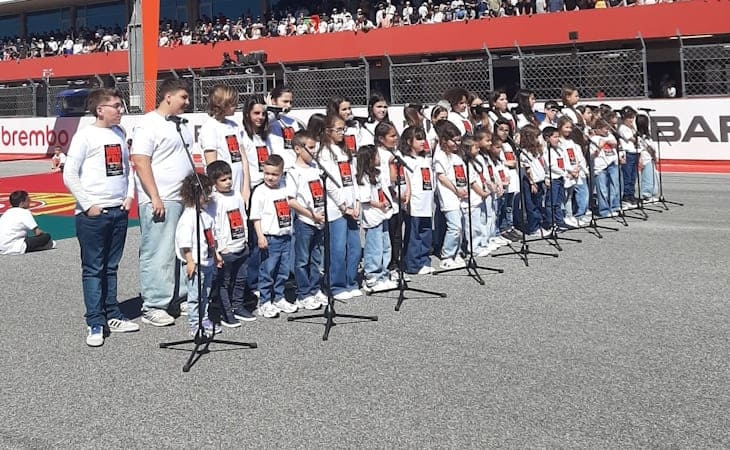 Acompanhadas à viola por Ricardo Silva e à guitarra portuguesa por Ricardo Martins, 44 crianças entoaram o Hino Nacional “A Portuguesa” perante milhares de pessoas que assistiram à prova.