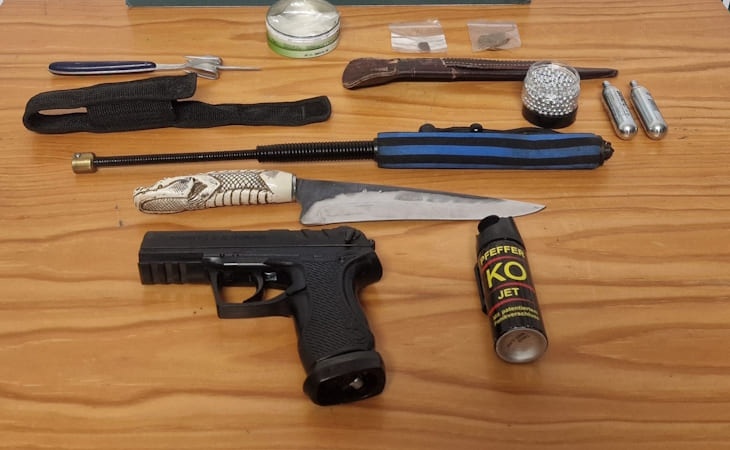 No decurso da ação policial, a GNR informa em comunicado que foram apreendidos: um bastão extensível; um punhal com lâmina de 20 centímetros; uma pistola de ar comprimido calibre 4,5 mm; um aerossol de defesa; um utensílio adaptado para possível arrombamento e oito doses de resina de canábis.