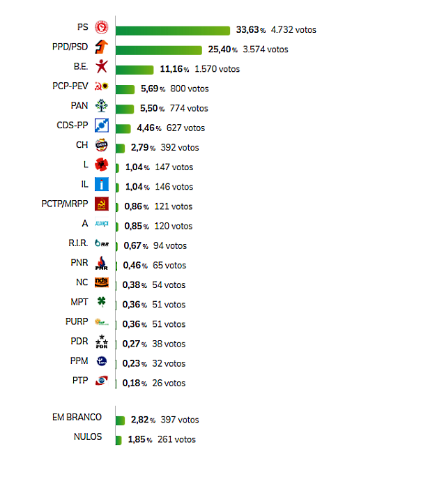 Resultados finais:(Fonte:Secretaria-Geral do Ministério da Administração Interna)