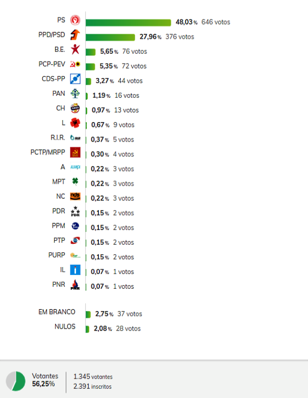 Resultados finais:(Fonte:Secretaria-Geral do Ministério da Administração Interna)