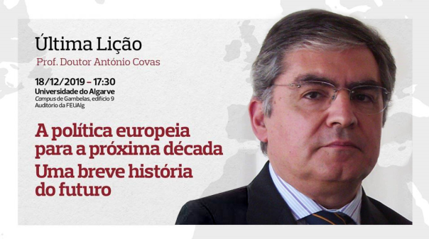 António Covas, professor Catedrático da Faculdade de Economia da Universidade do Algarve, irá proferir a sua última aula, intitulada "A política europeia para a próxima década - Uma breve história do futuro", esta quarta-feira 18 de dezembro, às 17h30, no Auditório da Faculdade de Economia, Campus de Gambelas.