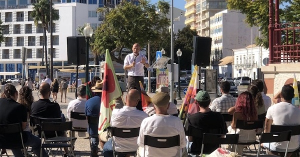 Numa intervenção à chapa do sol e com os termómetros a marcar 30 graus, Tavares escolheu o primeiro alvo: Pedro Pinto, líder parlamentar do Chega e candidato à câmara desta capital de distrito do sul do país.