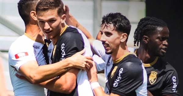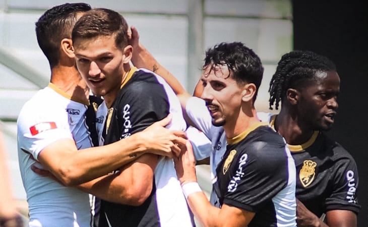 O jovem Leonardo Oliveira, titular no primeiro jogo pela equipa principal, abriu o marcador aos sete minutos, e Derick Poloni elevou a contagem, aos 45+1, de grande penalidade, com Samuel Justo a reduzir para os ‘verdes e brancos’, aos 72.