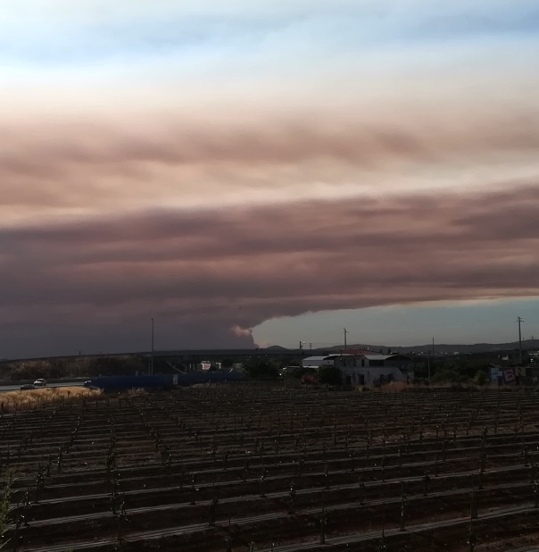 Devido à intensidade do fogo, formou-se uma gigantesca nuvem de fumo que rapidamente chegou até Faro a meio da tarde, como comprova a foto tirada na Variante da capital.