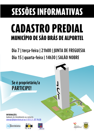 Neste âmbito, e no sentido de esclarecer os proprietários, o município promove a realização de 2 sessões informativas sobre este processo. A primeira sessão tem lugar na Junta de Freguesia de São Brás de Alportel, no próximo dia 7, terça-feira, pelas 21h00, e a segunda no Salão Nobre da Câmara Municipal, dia 15, quarta-feira, pelas 14h30.